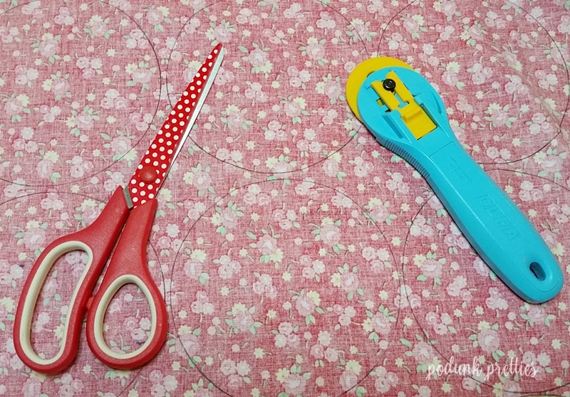Cut out your circles. No need for perfection in the cutting the raw edge will not show or be important in this project. If your comfortable with rotary cutter it makes the process go much faster. WARNING the manufacturer of a rotary cutter would say not to do this but I live life on the wild side. So use it at your own risk.