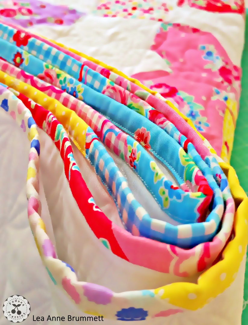 It doesn't get much more girly than this. I'm pretty sure my 6 year old little grand daughter, Aylin, is going to claim it for her own. She claims as many as she can but this one is staying at grannies house. The Lecien Flower Sugar Rose Kiss fabric bundle was curated by Pat over at Cottage Couture Fabrics.