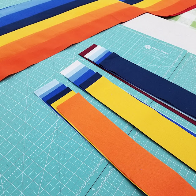 Hello Quilty Friends! Just a quick pop in to share the progress on the Lone Star quilt. It was another busy weeks so I didn't get as much done as I would have liked. Only three of the six strip sets were pieced.